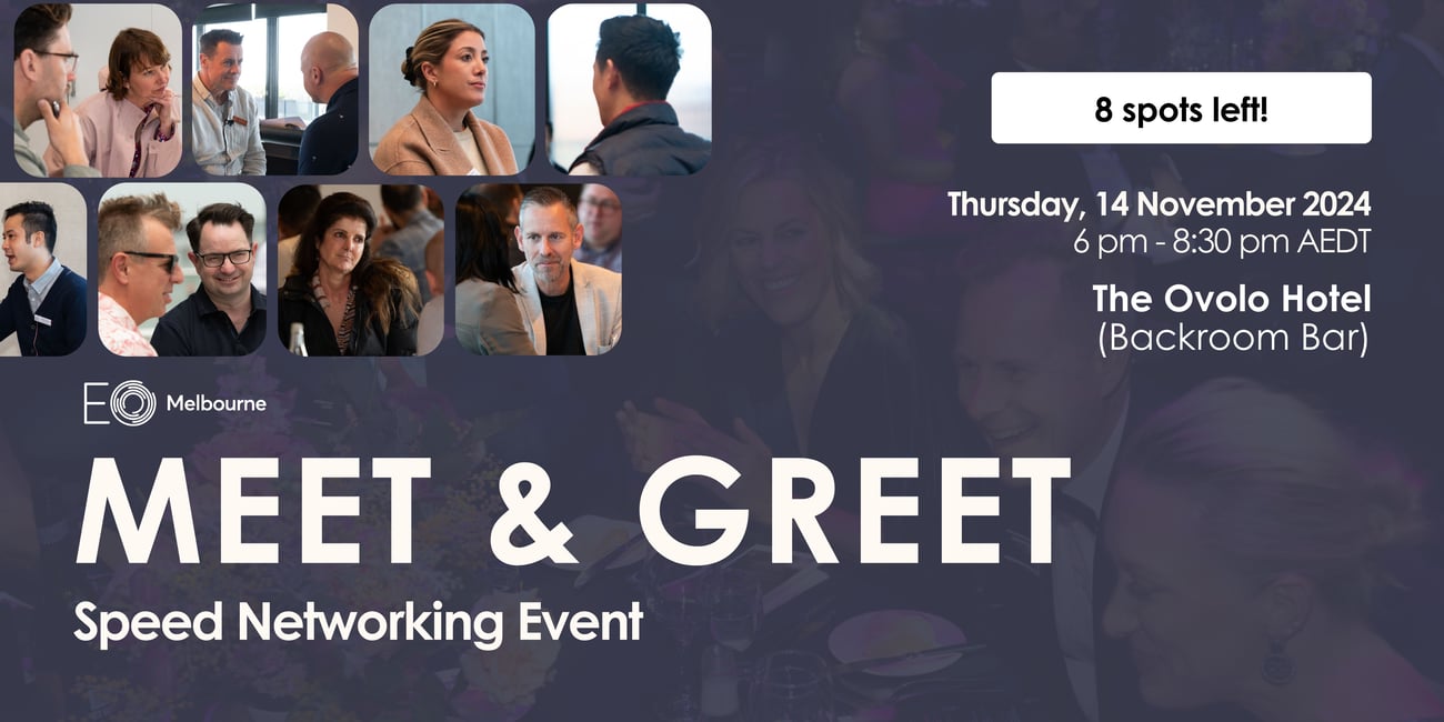 Are you under 35 (or young at heart)? Then the upcoming EO Melbourne Under 35s Event is for you! Join us this Thursday, 7 November, from 5:30 pm to 7:30 pm at Tetto Di Carolina in South Yarra. Enjoy drinks and nibbles at this casual gathering—the perfect opportunity to unwind and meet new faces. RSVP to Under 35s champion, Ben Simpson (ben@collectiveshift.com.au) if you’d like to come along.
