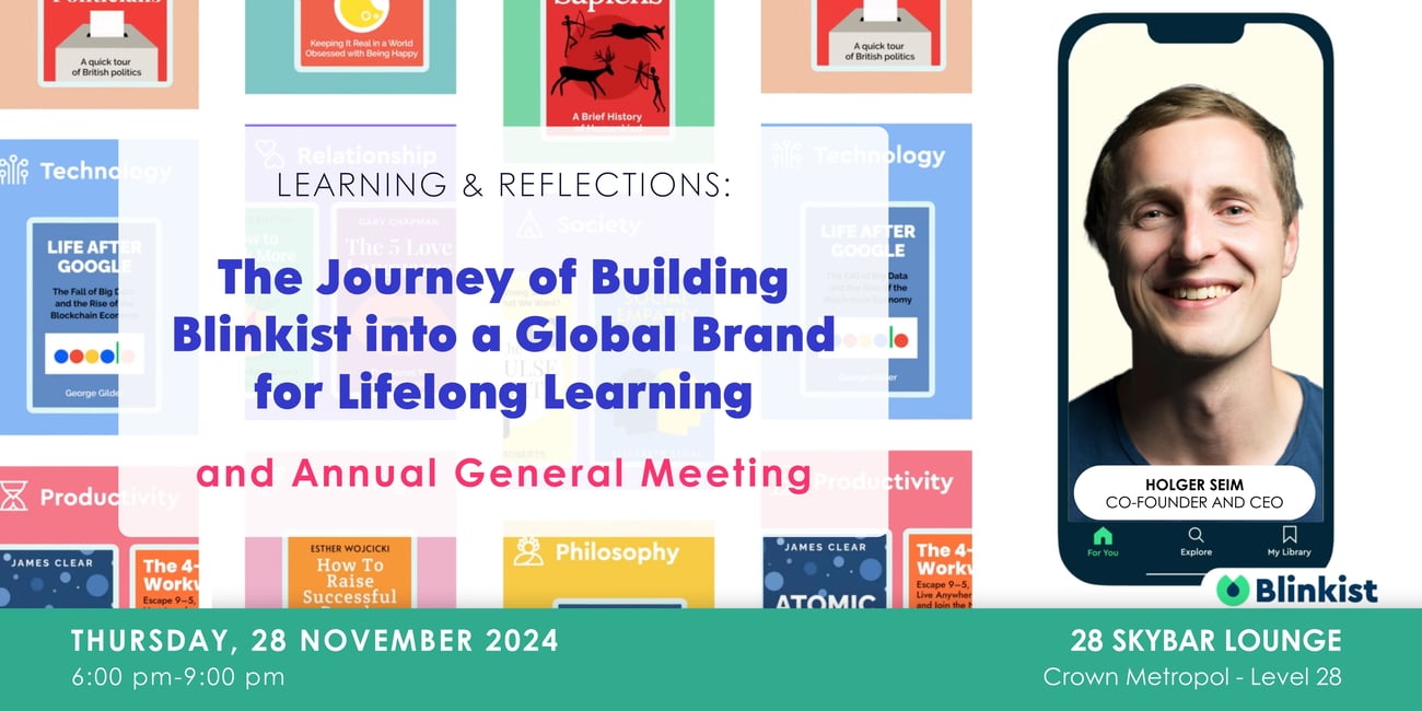 Then, on 28 November, we’re excited to present Learnings & Reflections: The Journey of Building Blinkist, followed by our Annual General Meeting. Gain valuable insights from Blinkist’s journey and join us as we reflect on the year and look forward.
